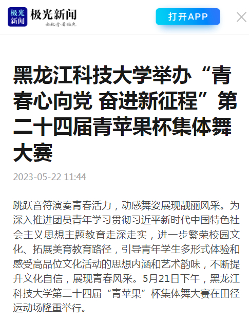 22/ 2023-05极光新闻:乐鱼网站_乐鱼(中国)举办“青春心向党 奋进新征程”第二十四届青苹果杯集体舞大赛 -