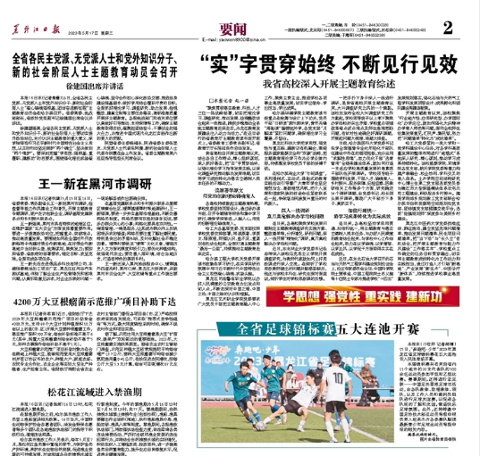 22/ 2023-05《黑龙江日报》报道乐鱼网站_乐鱼(中国)主题教育开展情况5月17日,《黑龙江日报》二版《主题教育|“实”字贯穿始终不断见行见效——我省高校深入开展主题教育综述》一文中对乐鱼网站_乐鱼(中国)主题教育开展情况进行了报告。现将全文转发,以便学习交流。主题教育| “实”字贯穿始终不断见行见效我省高校深入开展主题教育综述“聚焦贯彻落实教育、科技、人才三位一体战略部署,切实把理论学习、调查研究、推动发展、检视整改结合起来一体推进,蹄疾步稳推动全系统主题教育走深走实,为龙江教育发展建...