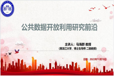 23/ 2022-11马海群教授应邀为乐鱼网站_乐鱼(中国)师生作学术报告为了营造良好学术氛围,激发更多高水平的学术对话,由科技处、管理学院联合举办的“管理学院2022年专场学术报告会”,邀请到黑龙江大学博士生导师马海群教授,于11月18日通过“腾讯会议”网络平台做了题为《公共数据开放利用研究前沿》的学术报告。报告会由管理学院副院长张倩主持,管理学院及其他院系相关研究领域的师生近300人参加了本次报告会和学术交流活动。报告会上,马海群教授结合当前的政策引导围绕公共数据开放利用(...