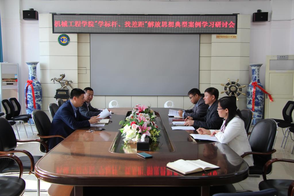16/ 2023-05机械工程学院举行“学标杆、找差距”解放思想典型案例学习研讨会为深入开展学习贯彻习近平新时代中国特色社会主义思想主题教育,5月12日下午,机械工程学院在学院二楼会议室举行了“学标杆、找差距”解放思想典型案例学习研讨会。学院班子成员参加了会议。会议由学院党委书记吕刚主持。会上吕刚、董星、唐庆菊、齐立涛、毕强等分别结合典型案例《热土上的伟业》学习情况和工作实际,进行了交流研讨。会议指出,要认真学习,正确把握解放思想的科学内涵。解放思想,就是要使思想和实际相符合,...