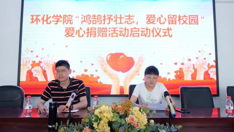 16/ 2023-06环境与化工学院举办“鸿鹄抒壮志,爱心留校园” 爱心捐赠启动仪式为引导学生感恩母校,营造良好的毕业文明离校氛围,6月15日中午,环化学院在学院报告厅举办“鸿鹄抒壮志,爱心留校园”爱心捐赠启动仪式。环化学院学工办主任周惠玉、2019级辅导员朱海璐以及毕业生代表、在校生代表参加启动仪式,仪式由辅导员朱海璐主持。启动仪式上,周惠玉宣读了《环化学院“鸿鹄抒壮志,爱心留校园”毕业生爱心捐赠活动方案》,毕业生代表环境19-1班叶思薇和在校生代表化工20-2班秦玮辰分别进行发言。毕业生...