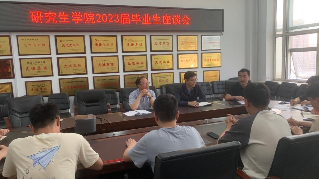 15/ 2023-06研究生学院召开2023届毕业生座谈会根据学校2023届毕业生离校工作安排,为切实听取毕业生对母校发展建设的建议和意见,研究生学院于6月13日下午组织召开2023届毕业生座谈会。研究生学院党委书记王维杰、院长张保勇,辅导员刘思锐以及2023届各专业的15名毕业生代表参加会议。会议由学工办主任郝鑫主持。首先,毕业生代表围绕研究生期间个人收获,母校师生情怀,对未来的规划憧憬,对学校教育教学、人才培养、综合服务、学校建设与发展等方面的建议与意见等座谈交流...