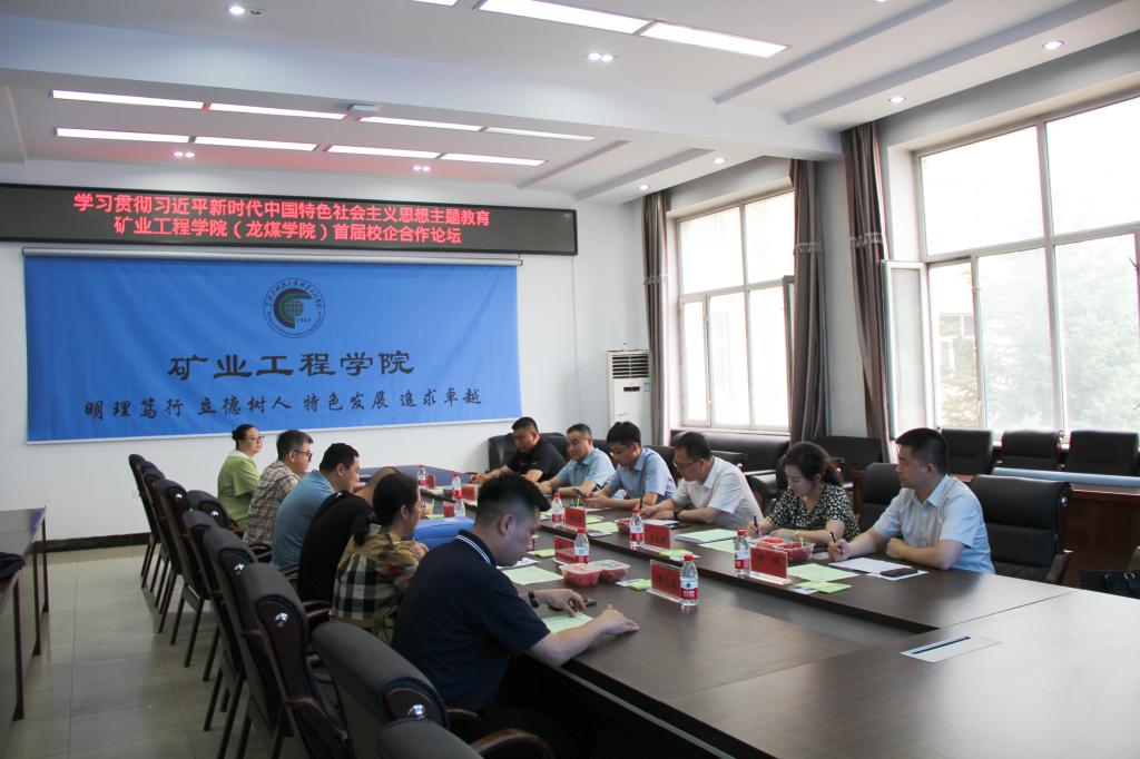 26/ 2023-06矿业工程学院(龙煤学院)成功举办首届校企论坛为深入开展学习贯彻习近平新时代中国特色社会主义思想主题教育,围绕深化产教融合,创新人才培养模式,推进校企合作。近日,矿业工程学院(龙煤学院)在学院二楼会议室举办首届校企论坛。矿业工程学院党委副书记李强、龙煤学院副院长商宇航、张永利,各年级辅导员、龙煤集团四矿业公司组织部副部长参加本次会议,会议由李强主持。论坛开始,李强致欢迎辞,详细介绍了龙煤学院学生日常管理及专业学科建设等基本情况,他指出合作...