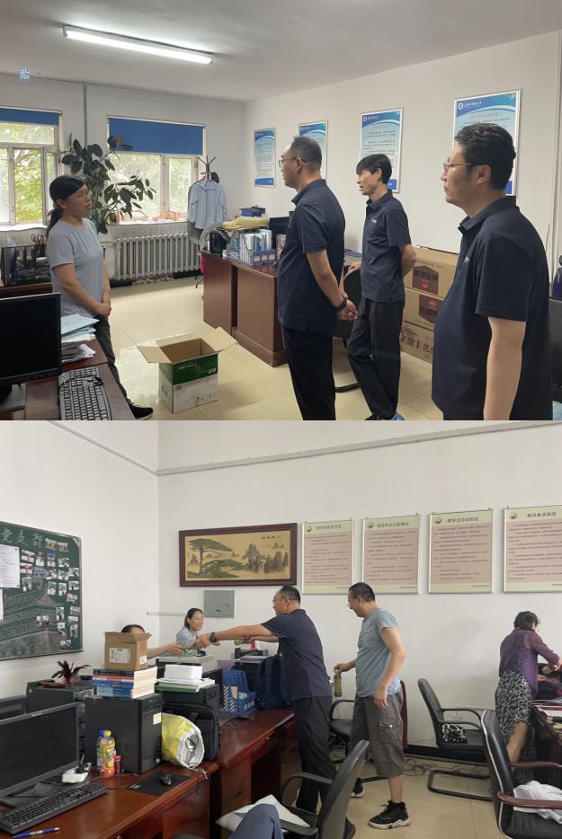 29/ 2023-06理学院开展“夏送清凉”活动为了增加教职工幸福感、获得感,6月27日上午,学院领导班子成员以及两办工作人员到学院各教研室开展了“夏送清凉”活动。对期末阅卷教师进行了慰问,带去了学院的问候和关怀,并送去了清凉饮料等慰问品。班子成员与阅卷教师们进行了交流,对阅卷教师“不畏酷暑、坚守岗位”给予充分的肯定。希望大家继续保持守责、负责、尽责的工作作风,坚决杜绝判卷工作中的徇私舞弊、打招呼、人情分等行为,自觉遵守政治纪律和政治规矩