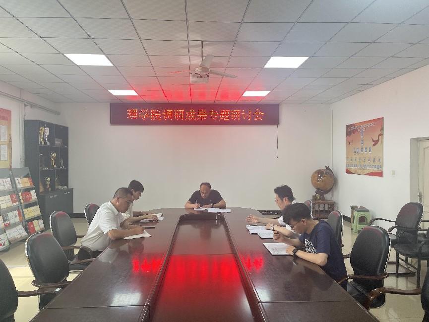26/ 2023-06理学院召开主题教育调研成果专题研讨会6月20日下午,理学院在二楼会议室召开了主题教育调研成果专题研讨会。学院领导班子成员参加了会议。会议由党委书记贺龙军主持。研讨会上,班子成员结合分管工作围绕“增强大学生网络舆情识别能力”、“探索学风建设有效途径”、“探索思政教学,培养高素质有社会责任感的人才”、“提高学院学科专业服务区域社会能力”等四个调研课题作交流发言,针对学院发展中的问题开展深入研讨,切实把调研成果转化为谋划工作的思路、制定政...