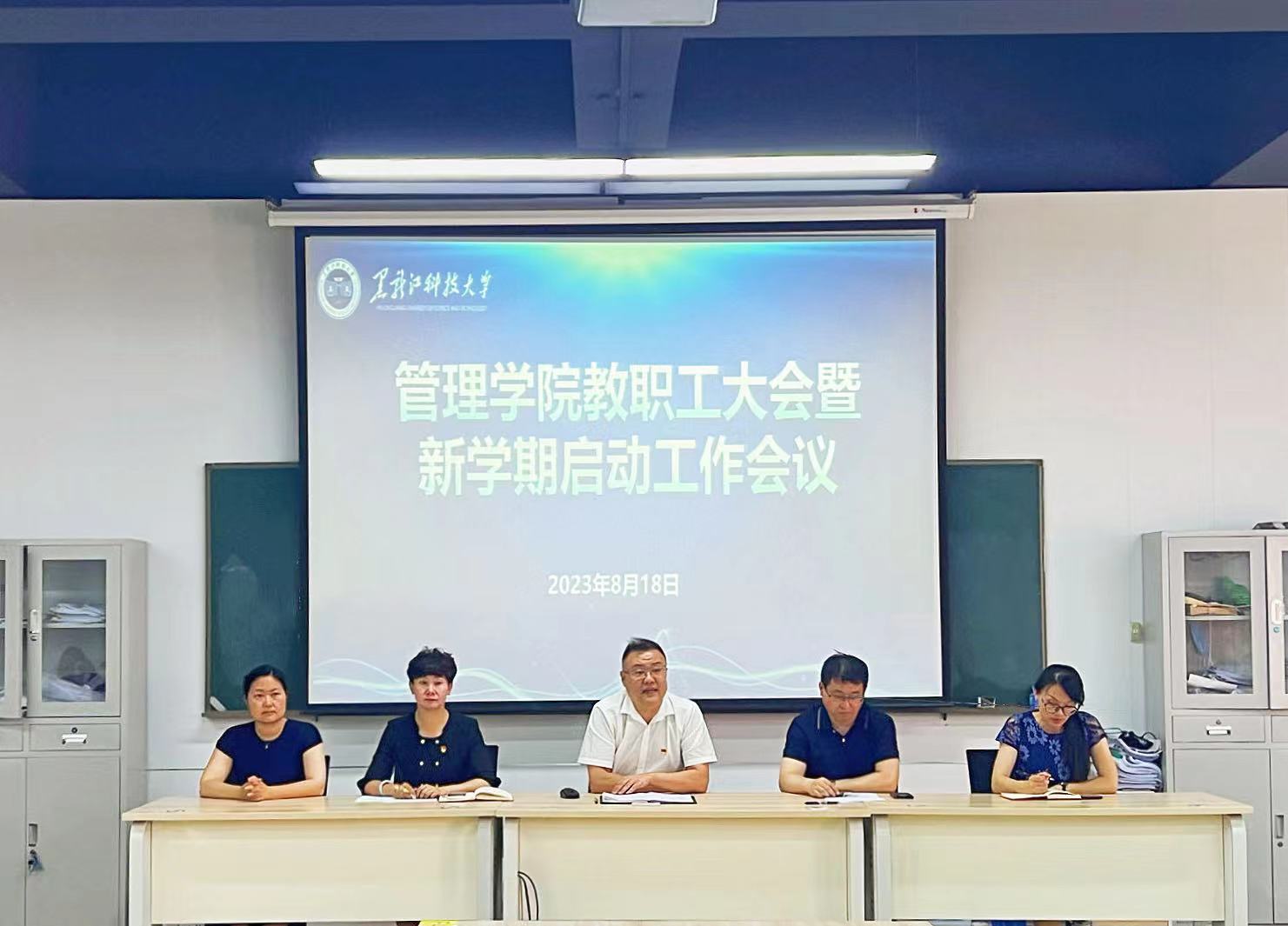 22/ 2023-08管理学院召开教职工大会全面部署新学期开学各项工作8月18日,为确保新学期启动工作扎实有力,管理学院召开了2023年秋季学期全院教职工大会,全面部署新学期开学各项工作。会议由学院党委副书记徐海英主持。会上,党委书记何景洋引领学院暑期新入职的三名博士和一名辅导员与全院教职工见面并依次进行了自我介绍;科研副院长张倩围绕研究生教育、科研和纪委工作,对研究生论文开题、2023届毕业生就业、科研项目完成、纪委典型案例学习等工作做了安排部署;党委副书记徐海英通报了20...