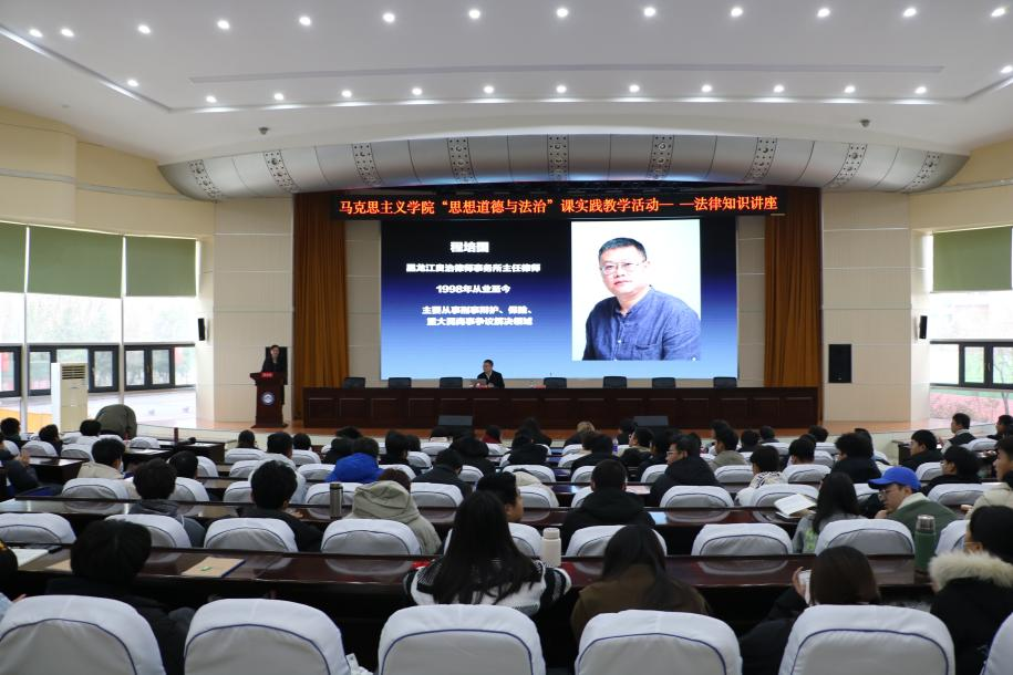 07/ 2023-11马克思主义学院开展“思想道德与法治”课实践教学活动——法律知识讲座为进一步学习贯彻习近平新时代中国特色社会主义法治思想,增强大学生的法律意识,培养法治思维,提升法治素养,努力把大学生培养成为社会主义法治的忠实崇尚者、自觉遵守者和坚定捍卫者,11月5日,马克思主义学院与校外实践教学基地——黑龙江良治律师事务所联合举办了“思想道德与法治”课实践教学活动。活动以专题讲座的形式展开,黑龙江良治律师事务所主任程培国律师为乐鱼网站_乐鱼(中国)近200名大一新生做了题为《志于道 据于德 依于仁 游...