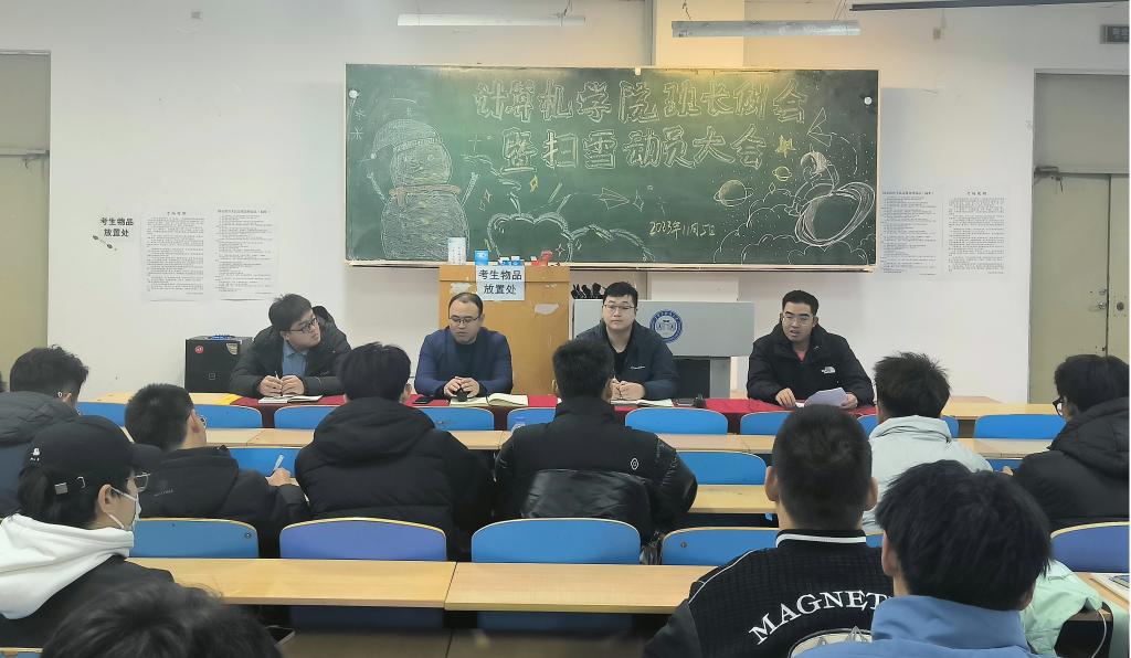 07/ 2023-11计算机与信息工程学院召开班长例会暨冬季扫雪工作动员大会为进一步加强学生教育管理,提高学生工作实效,11月5日晚,计算机学院在主楼EN0301召开班长例会暨冬季扫雪工作动员大会,学院全体班长参加会议,辅导员韩永辉、郭柏言、张宇智出席会议,会议由学工办主任王飞主持。会上,辅导员王飞围绕贫困生认定、国家奖助学金评定、学生教育管理等方面总结了近期学生工作,并从工作态度和实际效能上指出了各年级班长在落实工作中存在的问题和不足;辅导员郭柏言通报了近期各班级早晚自习出勤...