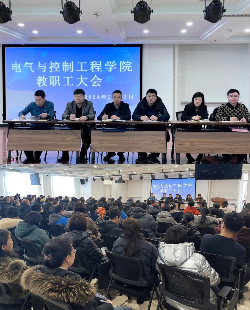 23/ 2024-02谋篇布局 扬电气精神 贡献电气力量——电气与控制工程学院召开2024年教职工大会为了更好地贯彻落实学校关于新学期有关工作要求,安排部署学院全年工作,电气与控制工程学院于2月22日上午在朝阳楼239室召开了全院教职工大会,会议由党委书记李鹏银主持,学院全体教师参加了会议。会上,学院副处级辅导员韩大伟就校友工作进行了通报;副院长李忠勤就新学期教学启动、毕业设计、审核评估、专业认证、实验室、双创工作进行了具体部署;副院长刘丹丹就国自然申报、研究生教学、硕导工作、毕业设计等进行了安排;...