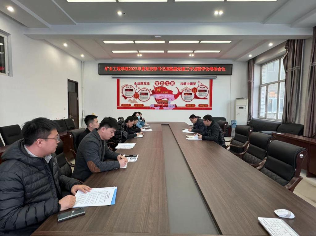 28/ 2023-12矿业工程学院召开2023年度党支部书记抓基层党建工作述职评议考核会议为持续增强基层党组织政治功能和组织功能,深入落实党的二十大精神和习近平总书记关于党的建设的重要思想,12月21日下午,矿业工程学院组织召开了2023年度党支部书记抓基层党建工作述职评议考核会议,会议由学院党委副书记李强主持。会上,学院8位党支部书记分别从年度党支部组织建设、活动开展以及特色亮点工作等方面,对一年来党支部的工作进行了总结汇报,并分别针对各自存在的问题提出了下一步工作打算。刘海涛肯定了各党支...