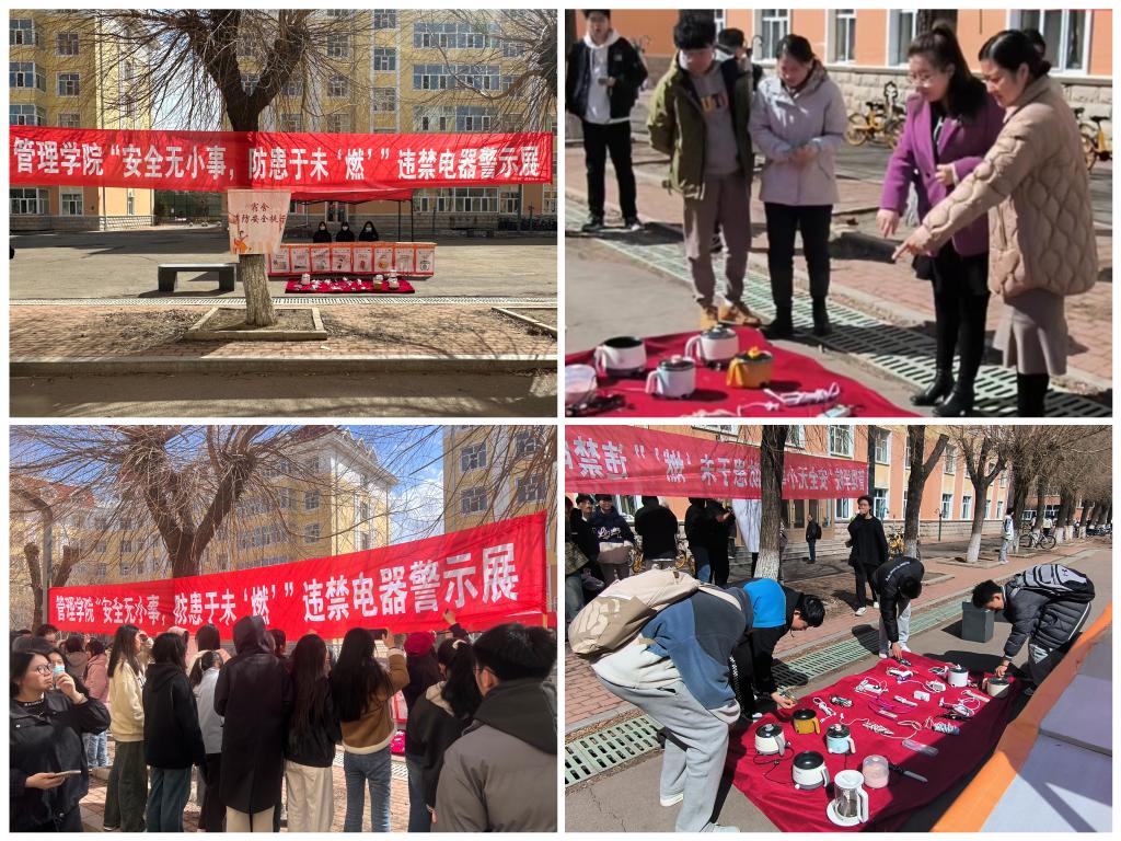 03/ 2024-04管理学院五个“瞄准”扎实开展消防安全教育系列活动为深入贯彻落实习近平总书记关于校园安全工作重要指示精神,按照学校《“永葆赤心、立德践行、勤学善思、笃行担当”主题教育活动方案》和《安全隐患排查百日会战专项行动方案》的要求,管理学院瞄准重点、难点、弱点、焦点、热点,推动学生一站式社区安全隐患排查专项行动落细落靠,于近期扎实开展消防安全教育系列活动。一、瞄准重点,深入学生社区,排查安全隐患。以学生社区安全隐患排查专项行动为契机,成立学生社区安全隐...