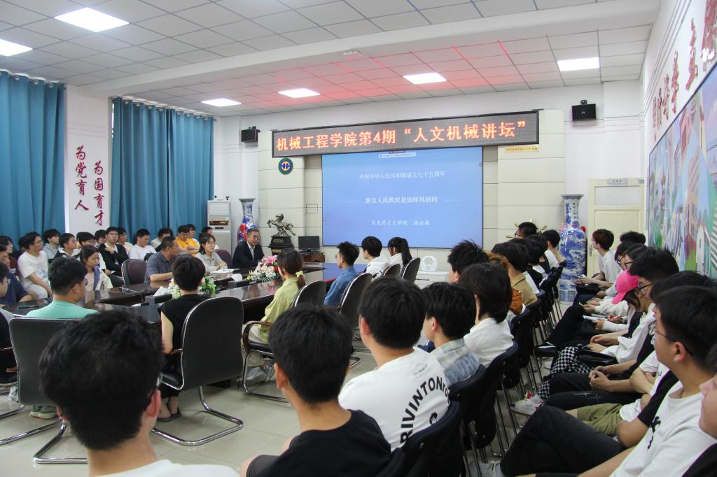 11/ 2024-06机械工程学院举办第四期“人文机械讲坛”6月6日下午,机械工程学院在学院二楼会议室举办了第四期“人文机械讲坛”。讲坛由乐鱼网站_乐鱼(中国)马克思主义学院教师连永新主讲。学院部分教师和学生150余人通过线上线下结合方式参加了讲座。讲座由副处级辅导员毕强主持。讲座上,连永新老师以《新生人民政权是如何巩固的》为题,从毛泽东同志在75年前将党中央从西柏坡向北平进发比作是“进京赶考”入题,简要交待了新中国成立前的历史背景和中国共产党人的使命担当;从民族独立、人民解放...