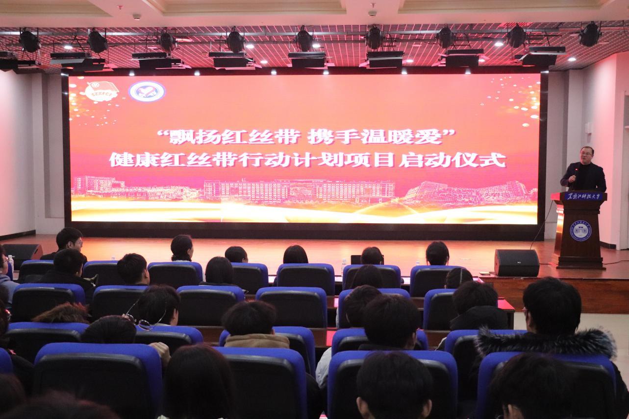 29/ 2024-11学校举办第三届“飘扬红丝带,携手温暖爱”健康红丝带行动计划项目启动仪式为扎实推进健康红丝带行动计划项目实施,全面提升广大学生的防艾意识和防范能力。11月24日,第三届“飘扬红丝带,携手温暖爱”健康红丝带行动计划项目启动仪式在朝阳楼0131室举办。校团委副书记陈曦、哈尔滨市嘉仁社会组织服务中心主任、黑龙江省积善之家帮扶中心行政主任吴风光、校医院院长封娟霞、校院两级志愿服务组织负责人、青春健康同伴社全体成员及近300名志愿者参加了活动。仪式上,全体师生集体观看了防治艾滋病宣传片;校青年志愿者协会副主席张志贤对项目进行了阐述;校青年志愿者协会副主席、青...