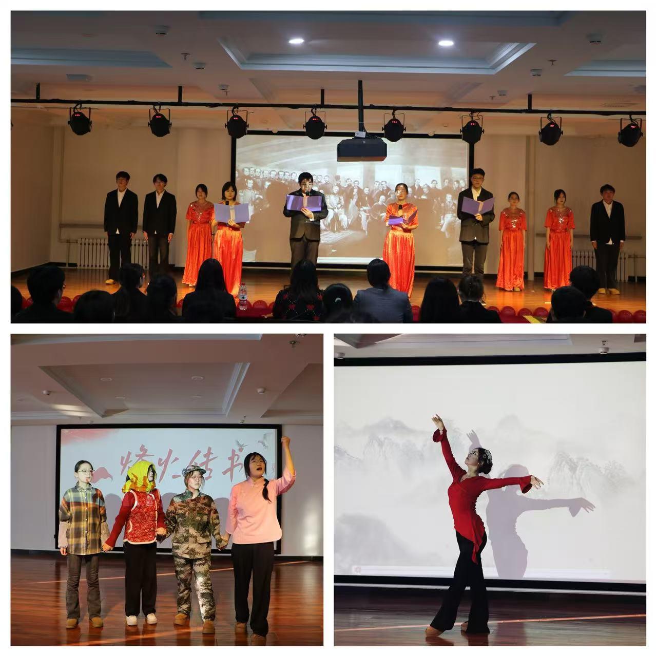 03/ 2024-12马克思主义学院举办“时代征程铸荣耀 使命在肩展风华”纪念“一二·九”89周年文艺汇演为纪念“一二·九”运动89周年,进一步弘扬爱国主义精神,深情缅怀革命先辈,共同传唱时代赞歌。11月30日,马克思主义学院在朝阳楼0239举办“时代征程铸荣耀使命在肩展风华”纪念“一二·九”运动89周年文艺汇演。马克思主义学院党委副书记李宁、团委书记宋烨、各二级学院学生分会执行主席出席了本次活动。本次汇演精心设计,“赤焰烽火忆峥嵘”“岁月弦歌续华章”“青春新姿耀未来”三个篇章沿革时代脉搏、奏响红色旋律。澎湃激昂的歌曲、深情动人的话剧、优雅多姿的舞蹈以及技艺精湛的演奏,用艺术形式讲...