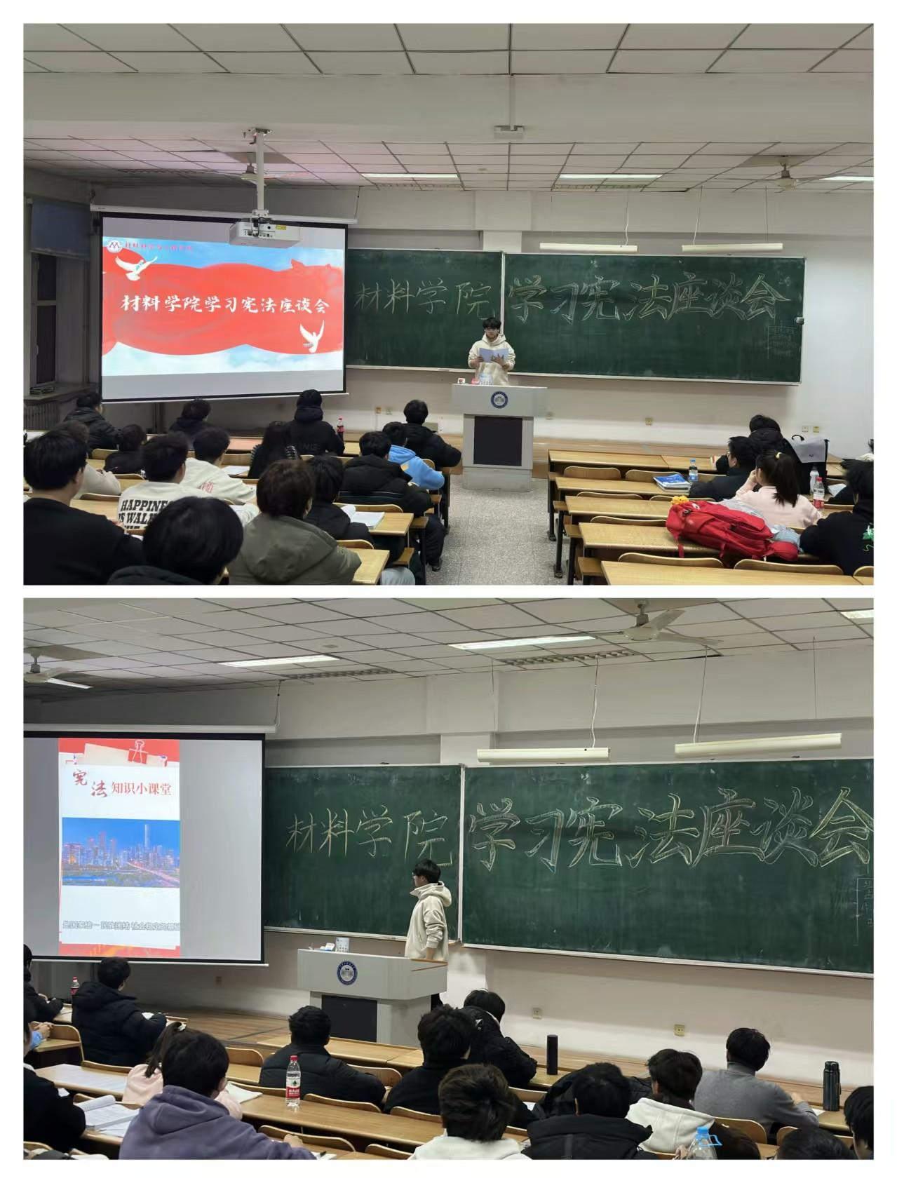 11/ 2024-12材料学院开展宪法宣传教育系列活动为深入学习贯彻党的二十大和二十届二中、三中全会精神,以及习近平法治思想,推动宪法宣传教育常态化长效化,按照学校《关于在全体学生中开展宪法宣传教育活动的通知》,材料学院于12月3日至12月8日,围绕“弘扬宪法精神,维护宪法权威”主题,举办了一系列丰富多彩的宪法宣传教育活动。学院积极响应学校号召,多措并举扎实有效地推进了宪法宣传教育,进一步增强了学生的宪法意识和法治素养。宪法讲座启明智,法治精神心中植。学院通过组织专题座谈会、宪法知识学习等活动,深入学习了习近平法治思想、宪法及其他...