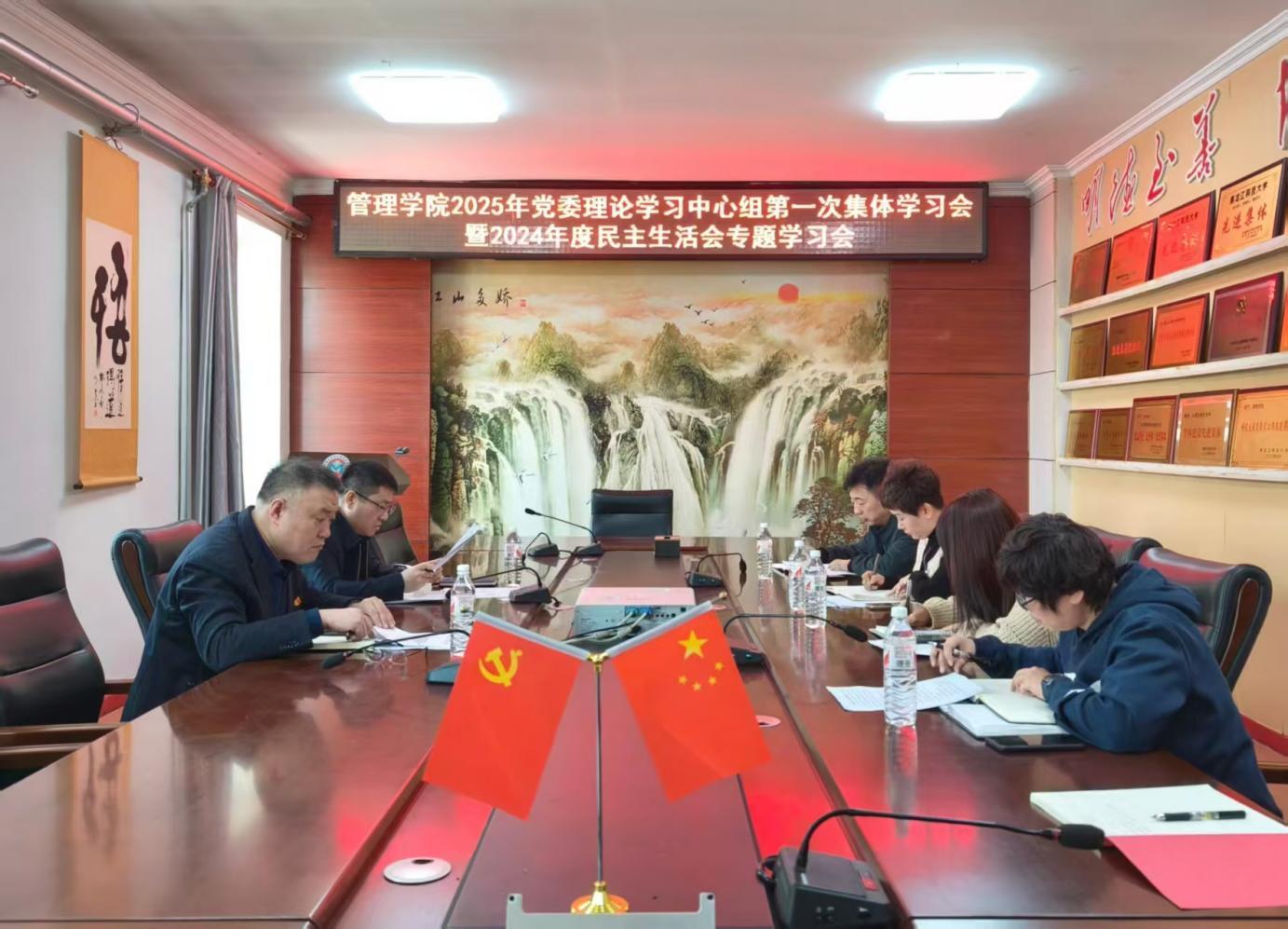 28/ 2025-02管理学院召开2025年党委理论学习中心组第1次集体学习会暨2024年度民主生活会专题学习会按照上级部署要求和学校党委工作安排,2月27日上午,管理学院在三楼会议室召开党委理论学习中心组2025年第1次集体学习会暨2024年度民主生活会专题学习会。学院党委书记何景洋主持领学并讲话,学院党委理论学习中心组成员参加会议。会上集中学习了习近平总书记在中央政治局民主生活会和二十届中央纪委四次全会上的重要讲话精神,重点学习领会习近平总书记关于党的建设的重要思想、习近平总书记关于全面加强党的纪律建设的重要论...