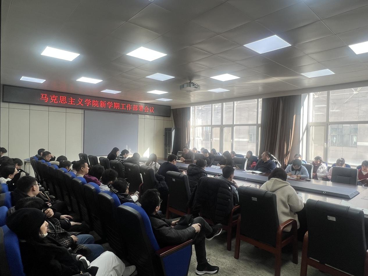03/ 2025-03马克思主义学院召开新学期工作部署会议为全面做好学院2025年工作,确保新学期各项工作扎实有序启动,2月28日下午,马克思主义学院在科技大厦二楼会议室召开教职工大会暨新学期工作部署会议。学院领导班子成员和全体教职工参加会议,会议由学院党委副书记李宁主持。会议集中传达学习了学校党委二届八次全体会议精神和学校二届二次教职工代表大会暨2025年度工作部署会精神。会上,院长冯德军对学院2024年工作取得的主要成绩进行了总结,分析了学院面临的新形势和存在的问题,部署了学院2025年重点工作和新学期开学启动各项工作。党委副书记...