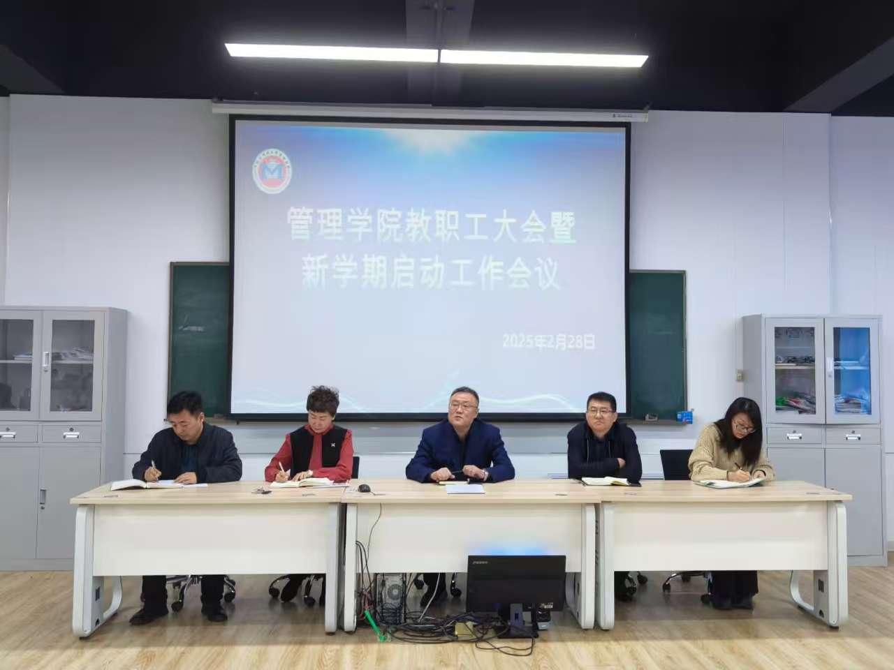 04/ 2025-03管理学院召开2025年春季学期开学工作启动会议为深入贯彻落实党的二十届三中全会精神和学校2025年度工作会议精神,进一步明确学院新学期工作目标,统筹推进各项工作有序开展,2月28日下午,管理学院在ERP教室召开了2025年春季学期开学工作启动会议。学院领导班子成员以及全体教职工精神饱满、齐聚一堂。会议由学院党委副书记徐海英主持。党委书记何景洋首先领学了学校党委二届八次全体会议精神和学校二届二次教职工代表大会暨2025年度工作部署会议精神。围绕凝心聚力做好年度重点工作,他强调:一要强化政治引领。全面贯彻落实习近平总书记重要讲...