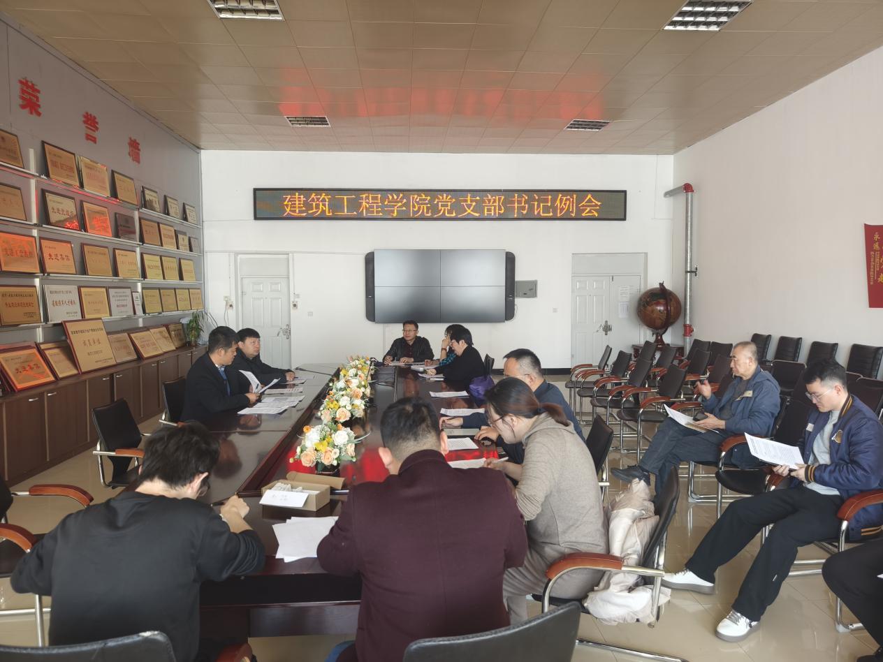 25/ 2025-03建筑工程学院召开党支部书记例会部署党建重点工作3月24日下午,建筑工程学院召开党支部书记例会,党委书记高宝全主持会议,党委副书记展跃及全体党支部书记参加会议。会议集中学习了中央八项规定精神,安排部署了党支部换届等工作,并就加强党的建设、推动党建与业务深度融合提出具体要求。会议强调,党支部按期换届是规范党内政治生活、增强基层党组织政治功能的重要举措。各支部要高度重视,精心组织、周密安排。一是压实责任,支部书记要切实履行第一责任人职责,确保换届工作有序推进;二是规范程序,严格遵守党章规定,充分发扬党内民主,广泛听取党员意见;三...