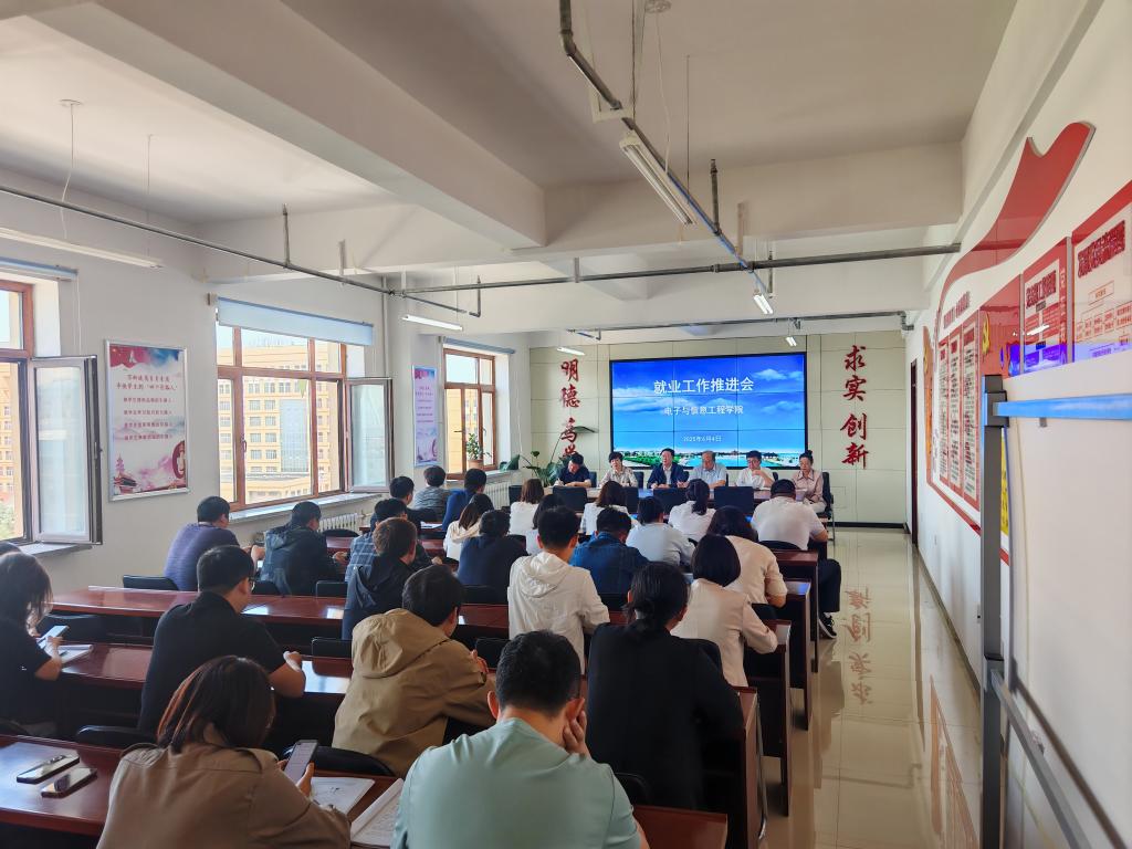 04/ 2025-06电信学院召开2025届毕业生就业工作推进会为做好2025届毕业生就业工作,全面落实学校总体部署和相关会议要求,全力推进学院就业工作稳步开展,6月4日上午,电子与信息工程学院在朝阳楼0809会议室召开2025届毕业生就业工作推进会,学院领导班子全体成员、各系部负责人、各党支部书记、全体辅导员、毕业班班主任、毕业指导教师等参加会议。会议由电信学院党委书记齐秀强主持。会议指出,教育是民生之基、就业是民生之本。就业工作既是“一把手”工程,又是“一盘棋”工作。毕业生就业质量,关乎学生的切身利益,关乎学校的建设和发展,也直接反映学...