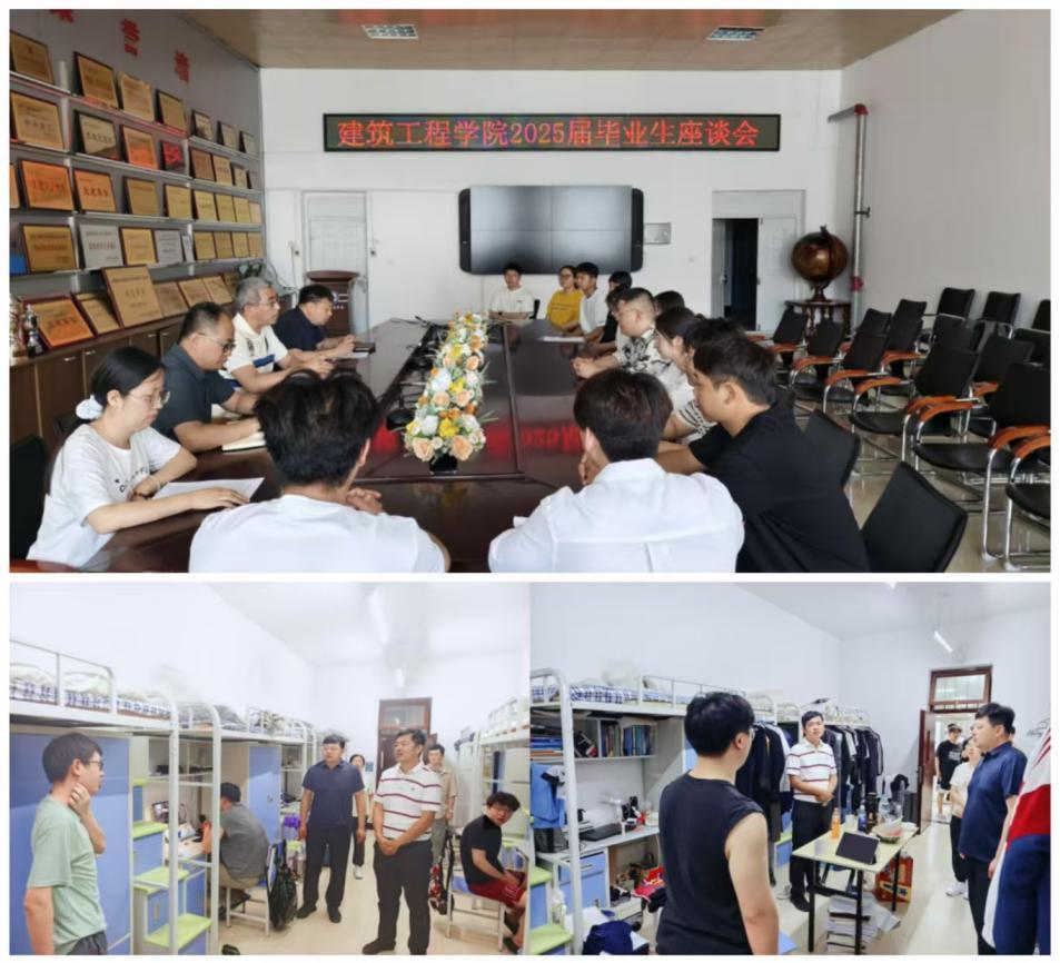 25/ 2025-06建筑工程学院多措并举开展2025届毕业生离校主题教育系列活动为切实做好毕业生离校教育工作,建筑工程学院近期精心策划开展系列主题活动,通过座谈交流、体育竞技、就业论坛、暖心饯行等多元形式,将育人情怀融入毕业季每个环节,为2025届学子打造有温度、有深度的离校送别礼,助力学子扬帆起航。师生共话成长情建言献策谋发展。学院举办毕业生座谈会与宿舍走访慰问活动。座谈会上,学院领导与毕业生代表围坐畅谈,同学们分享大学四年成长感悟,就教学管理、实习实践等方面建言献策。院长姜封国向毕业生提出“胸怀家国、坚持学习、心系母校”三点期望,寄语学子传承建工精神。...