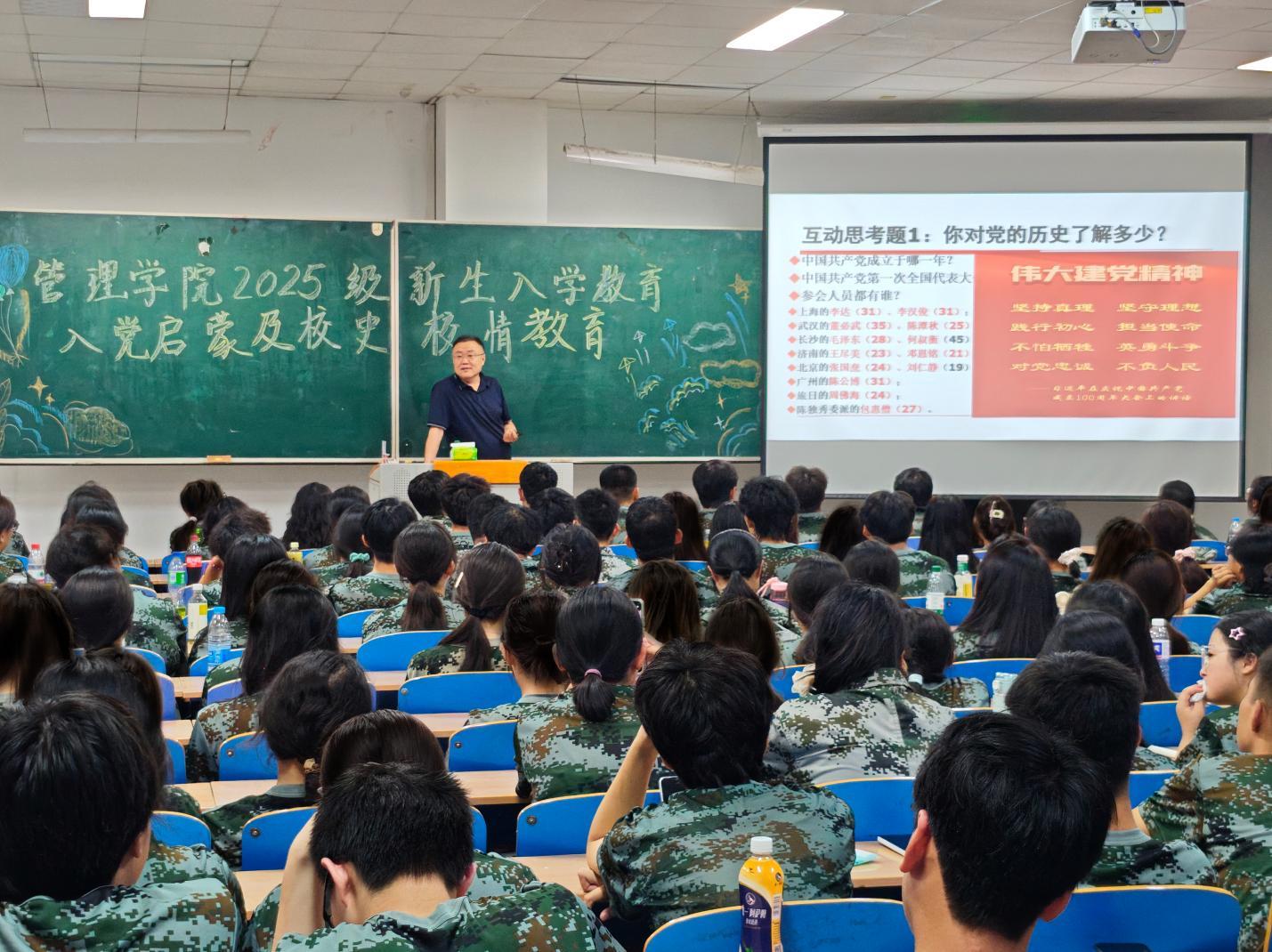 09/ 2025-09管理学院开展2025级新生入党启蒙暨校史校情教育为深入学习贯彻习近平新时代中国特色社会主义思想,全面落实《乐鱼网站_乐鱼(中国)2025级学生入学教育方案》,引导新生厚植信仰根基、校准政治方向,9月2日,管理学院党委书记何景洋先后走进主楼WN0201、WS0304教室,围绕“争做党的好儿女”主题,以校史校情为切入点,为2025级全体新生讲授入党启蒙教育第一课。课程从党史与校史双重维度展开,以互动提问激活思考、以史实叙述还原脉络、以精神提炼升华内核,系统梳理中国共产党百年发展脉络与乐鱼网站_乐鱼(中国)办学历程——从中共一大代表的初心故事,到...