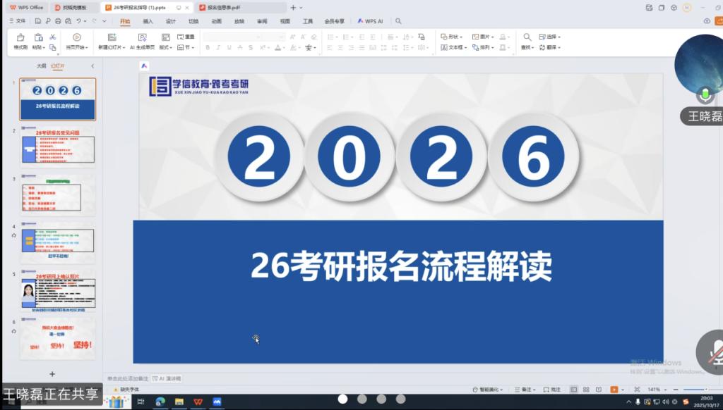 20/ 2025-10电子与信息工程学院举办2026届毕业生考研报考指导会近日,电子与信息工程学院党委统筹安排,多角度、多方位、多措并举推进2026届毕业生高质量就业及升学工作,切实为2026届毕业生办实事、解难题。为精准服务学生考研需求、助力2026届毕业生洞悉考研形势、掌握科学报考方法,10月17日,电子与信息工程学院举办2026届毕业生线上考研报考指导会。本次会议特邀国内知名考研规划专家王晓磊老师主讲,吸引了近百名有考研意向的毕业生踊跃参与。本次指导会聚焦同学们最关切的“备考策略...