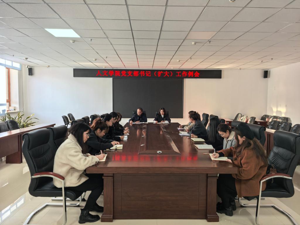 17/ 2025-10人文学院召开党支部书记(扩大)工作例会为认真贯彻落实第二十八次全国高校党的建设工作会议及学校2025年全面从严治党工作会议精神,强基固本筑堡垒,10月16日下午,人文学院在朝阳楼0317会议室召开党支部书记(扩大)工作例会。学院党委书记孙晓辉出席会议,各党支部书记及教师党支部支委会成员参加会议,会议由学院党委副书记杨凤娟主持。会上,杨凤娟围绕深入贯彻中央八项规定精神学习教育工作进行全面总结,系统回顾各党支部在标准化规范化建设中取得的阶段性成果,明确指出当前工作中存在的薄弱环节。同时,结合党建工作实际,对下一阶段的重...