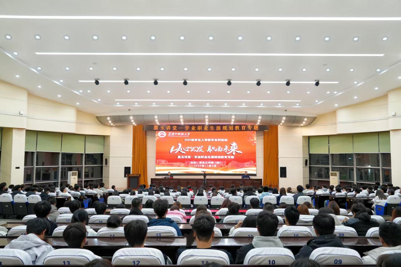 10/ 2025-11学校举办墨玉讲堂解锁2025级学生学业职业规划“第一课”在2025级学生逐步适应大学生活的关键阶段,为进一步唤醒学生生涯意识,引导学生明确成才目标、制定学业规划,11月6日,学工部(处)在办公楼报告厅举办了“墨玉讲堂”。讲堂采用了“线上+线下”“主会场+53个分会场”的灵活形式,实现了4000余名学生同上一堂课。讲堂邀请了学校党委宣传统战部部长高志刚担任主讲嘉宾。高志刚以《从心出发职面未来—与2025级新生谈生涯》为题,以“找朋友”趣味互动开场,带动全场学生积极融入,轻松活泼的氛围迅速拉近了师生距离。他从三个维度展开深入讲解:“取势...
