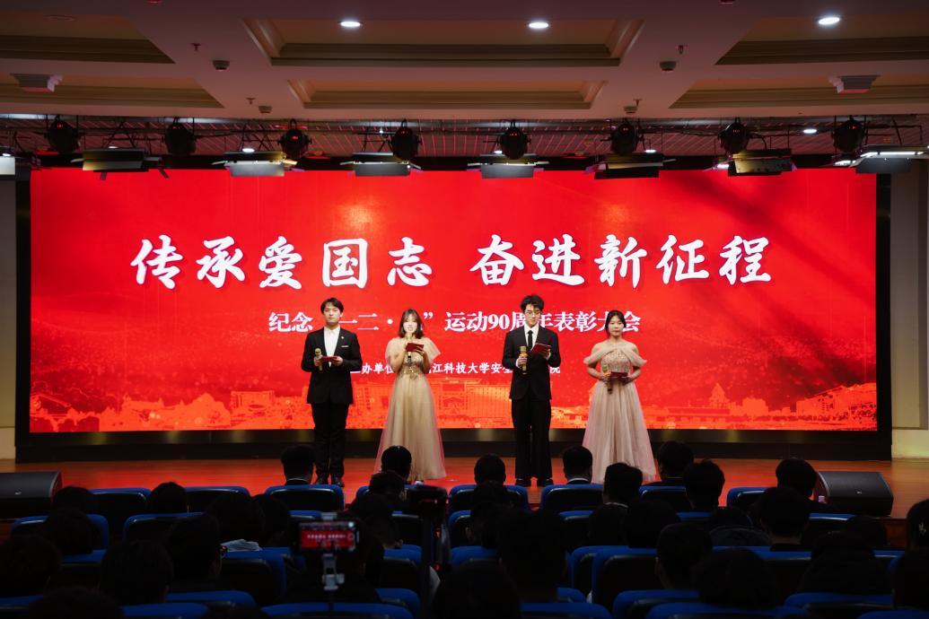 09/ 2025-12安全工程学院召开“传承爱国志 奋进新征程”纪念“一二·九”运动90周年暨“先优”表彰大会为纪念“一二·九”运动90周年,引领青年学生铭记历史、缅怀先烈,弘扬爱国主义精神,担负起新时代赋予青年的重要使命,12月7日,安全工程学院召开了“传承爱国志,奋进新征程”纪念“一二・九”运动90周年暨“先优”表彰大会。学院全体辅导员、学生组织主席团成员、全体受表彰先优代表及2025级全体新生参加了本次大会。表彰大会开幕大会在致敬历史、礼赞时代的文艺演出中拉开帷幕。歌曲串烧《麻雀》《千山万水》《光辉岁月》《如愿》,以动人的旋律叙事,串联起从个体拼搏到集体奋进、从铭记历史到圆梦盛世...