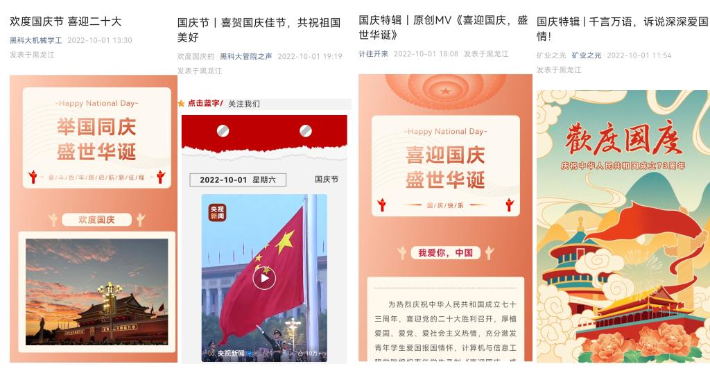 营造网络主题宣传,做肯奋斗的新时代好青年。各级团学组织在新闻媒体和舆论平台集中开展网络主题宣传活动,开设系列专题专栏,通过话题讨论、留言互动、送祝福等方式,掀起全媒体宣传热潮,大力唱响奋进新征程的昂扬旋律。计算机学院团委录制了《我和我的祖国》手势舞视频,伴随着一个个灵活生动,巧妙优美的手势,自豪与爱国之情洋溢在每个学子心中。矿业学院团委、外国语学院团委纷纷开展了团歌传唱活动,进一步加强学生爱党爱国情怀,弘扬红色文化,传承红色基因。