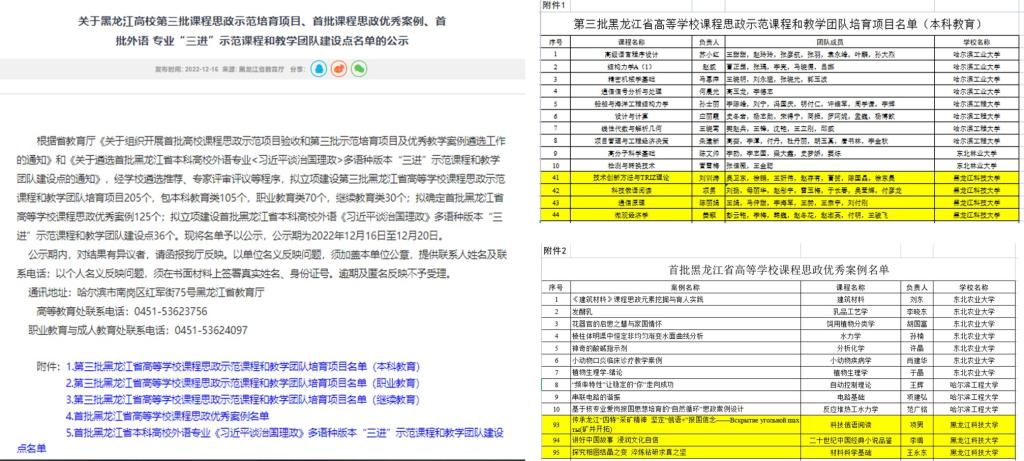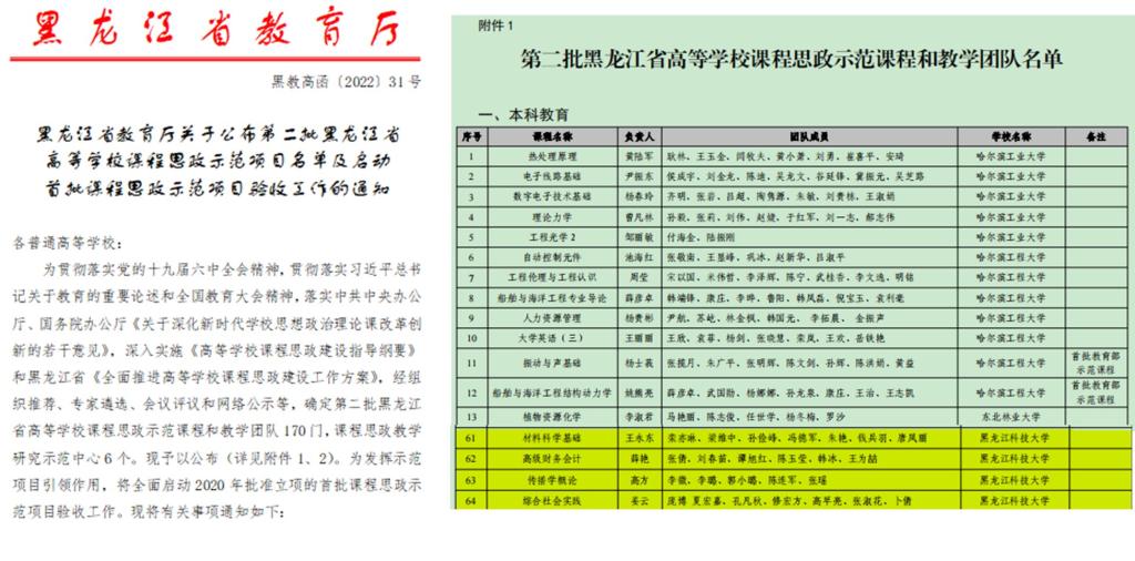 2022年1月26日,教育厅发布《关于第二批黑龙江省高等学校课程思政示范项目名单的公示》,乐鱼网站_乐鱼(中国)《材料科学基础》《高级财务会计》《传播学概论》《综合社会实践》四门课程获批第二批省课程思政示范课程和教学团队示范项目。