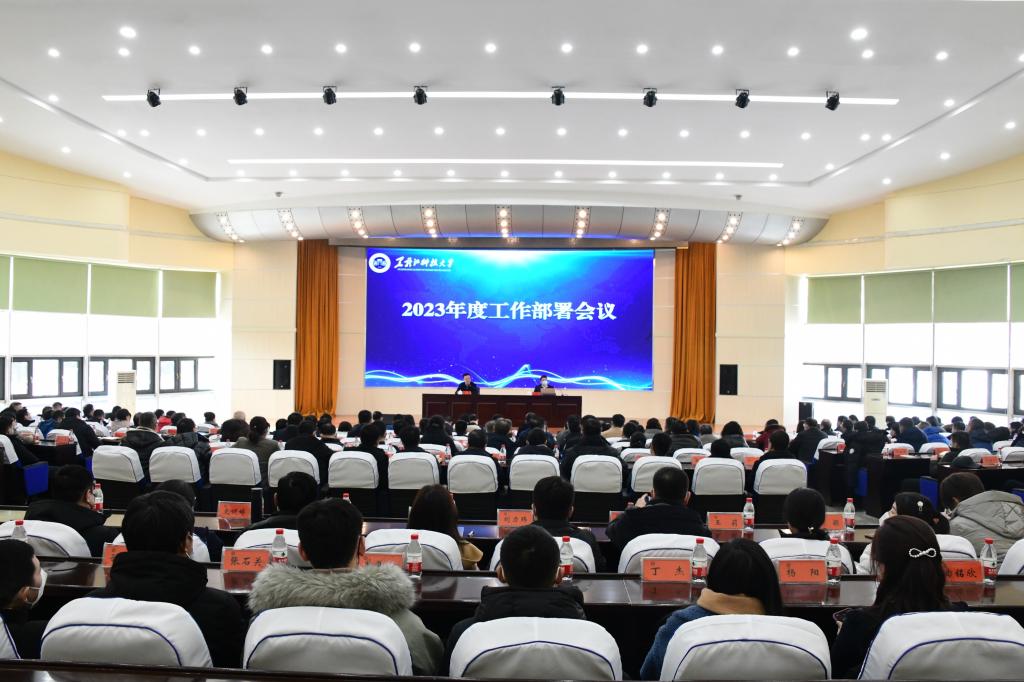 孟上九回顾总结了2022年度主要工作并对本年度学校重点工作进行了安排部署。一是以科学谋篇布局为统领,让学校内部治理更具效能。扎实推进学校“十四五”规划实施;完善以章程为统领的制度体系;深化新时代教育评价改革。二是以建成省特色应用型本科示范高校为牵引,人才培养模式更具乐鱼网站_乐鱼(中国)特色。高质量建成省特色应用型本科示范高校;完善应用型人才培养模式,深化科教融合、学科融合、产教融合及专创融合。三是以成功获批博士学位授予单位为引领,让学校内涵建设更上水平。全力争取获批博士学位授予单位;推进特色学科建设;推进“新一轮本科教育教学审核评估”工作;推进专业内涵建设。四是以推进学生全面发展为重点,让人才培养更有质量。提升学生教育管理服务水平;提升研究生培养水平;提升招生就业工作水平;提升创新创业工作水平;提升开放办学水平。五是以提高科研水平和服务能力为抓手,在助力龙江振兴发展中更显担当。聚焦提升科研攻关能力;聚焦高层次科研平台建设;聚焦提高社会服务贡献度。六是以建设高水平师资队伍为引领,让人才队伍更具实力。加强引才聚才工作;加强人才培育工作;加强激励机制建设。七是以持续改善民生为导向,让师生更有幸福感。坚持“以人民为中心”的发展思想,通过加强财务与审计监督管理,加强国有资产管理,加强基础建设和后勤服务保障,加强民生改善工作,加强“平安校园”建设积极改善办学条件,持续办好民生实事,努力提升师生幸福感、获得感、安全感,着力打造和谐平安校园。