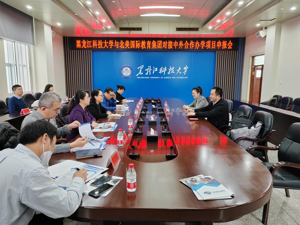 国际交流合作处副处长吕岚、经济学院院长孙永波、教师卢志滨、建筑工程学院副院长姜封国、计算机与信息工程学院项目负责人于海英及安全学院、理学院教师同北美教育集团就中外合作办学的项目的拟合作外方院校区域国别情况、专业分布、办学层次、培养方式及申报材料准备等方面进行了详细的沟通。