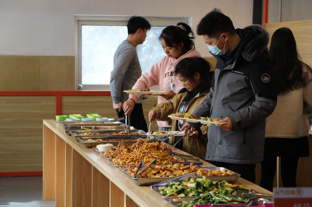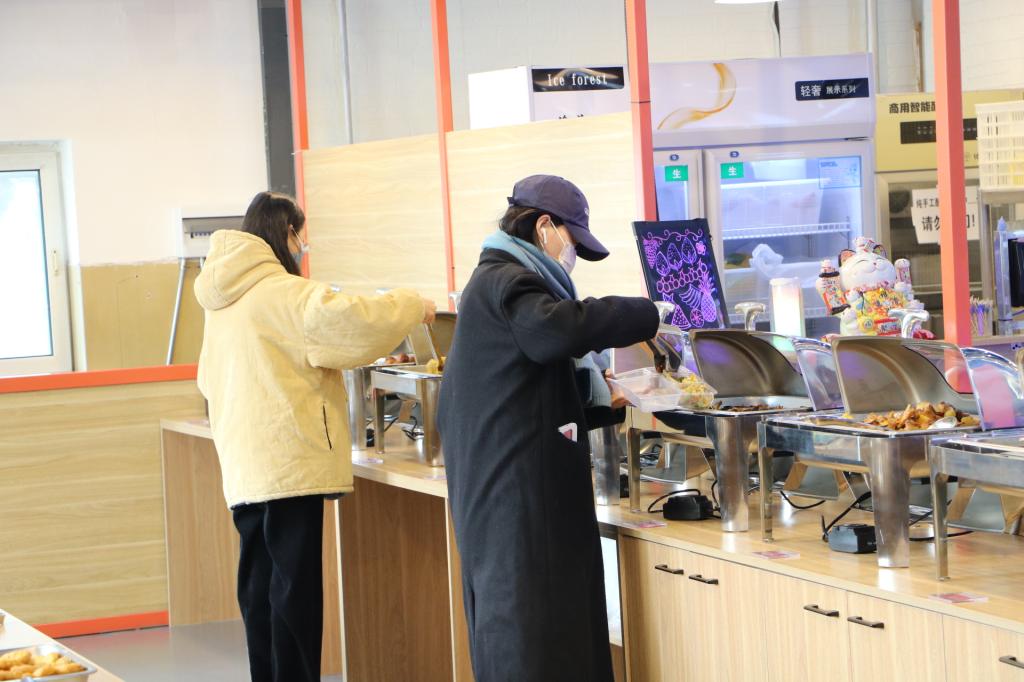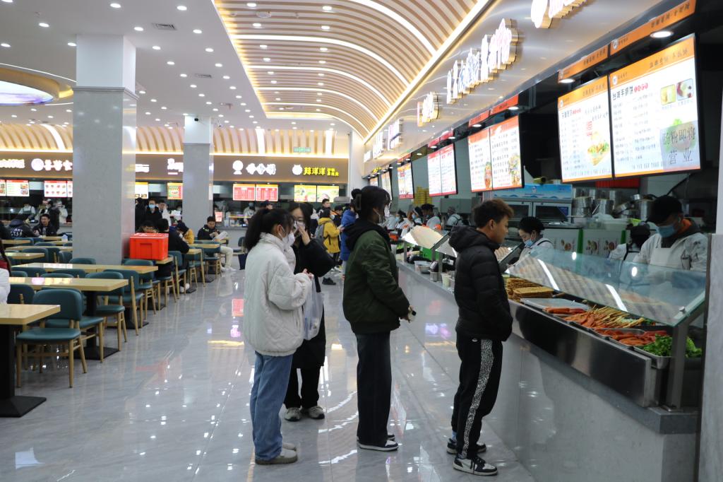 下课铃响起,同学们结伴来到食堂,有序就餐。