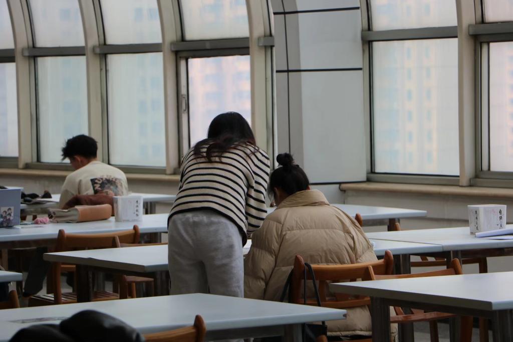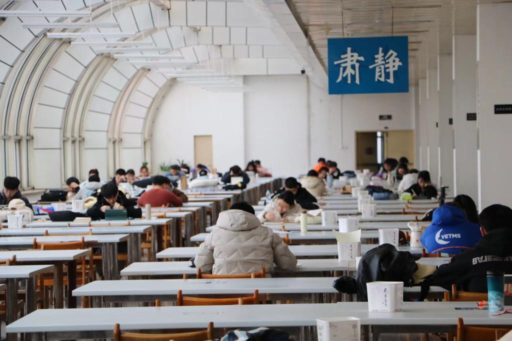 图书馆里,初春的阳光,整齐的桌椅,淡淡的书香,学生们坚定的目光,充满对未来的无限期待。