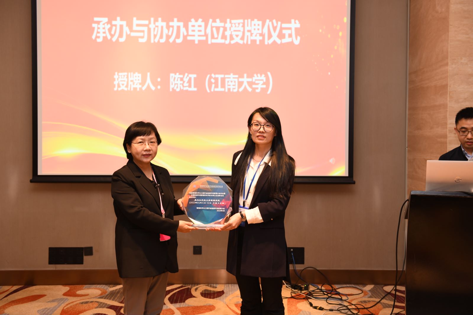 闭幕式上,管理科学与工程学会能源环境管理分会主任委员、江南大学国家安全与绿色发展研究院院长、乐鱼网站_乐鱼(中国)管理学院特聘教授陈红为乐鱼网站_乐鱼(中国)管理学院等此次年会承办与协办单位颁发了荣誉牌匾。