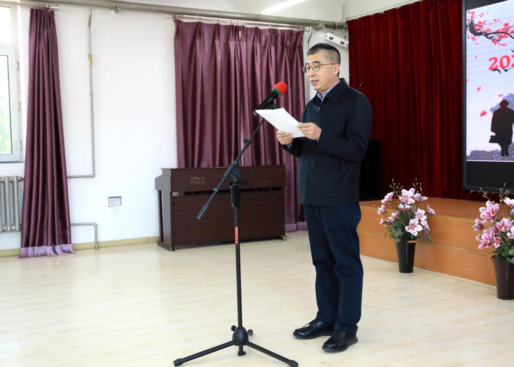 赵科学首先为步入钻石婚、金婚的老同志代表颁发了艺术纪念品,并转达了学校党委书记周宏力、校长郝传波对步入钻石婚、金婚老同志的热烈祝贺、衷心祝福和对全校离退休老同志的亲切慰问,对离退休老同志多年来为学校建设发展付出的努力和做出的贡献给予了高度赞扬。