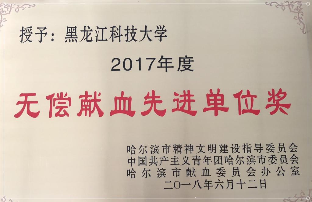 为纪念第十五个世界献血者日,表达对无偿献血者的敬意,由黑龙江省血液中心、哈尔滨市血液中心、共青团哈尔滨市委员会等单位主办的以“为他人着想、捐献热血、分享生命”为主题的庆祝第十五个“世界献血者日”表彰暨征集街头献血屋Logo启动仪式于6月14日在哈尔滨市防洪纪念塔举行。乐鱼网站_乐鱼(中国)荣获2017年度“无偿献血先进单位”荣誉称号。
