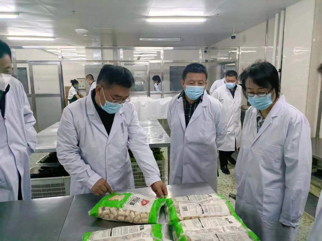 教职工代表统一更换工作服后,在工作人员的引导下,按照饮食工作流程依次参观了仓库、米饭生产线、洗菜间、切配间、操作间、洗消间等工作区域,重点查看了48小时食品留样柜、明厨亮灶系统、制度上墙、人员健康管理及消毒通风记录等内容。对食堂原料采购、食品贮存、生产加工、食品留样、清洗消毒、餐厨废弃物处置、员工管理等方面的工作进行了全链条、全过程的深入了解。