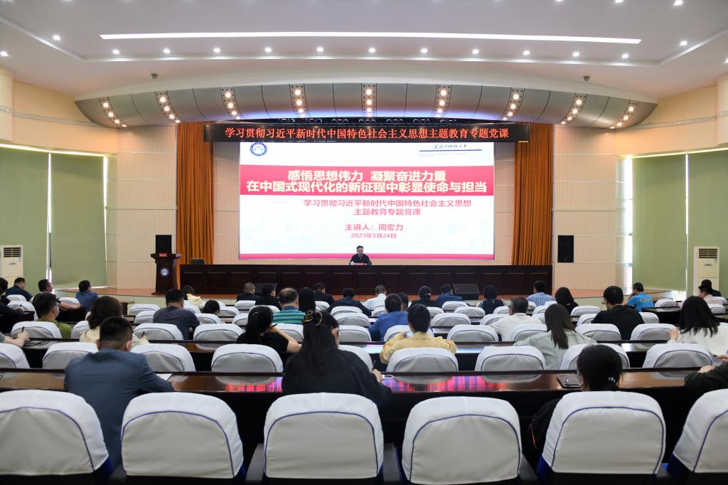 周宏力结合自身学习,联系学校实际,运用大量数据和事例,围绕“深刻感悟以中国式现代化推进中华民族伟大复兴的丰富内涵”“深刻理解开展主题教育是汇聚逐梦复兴磅礴力量、推进中国式现代化的必然要求”等方面进行了阐述。