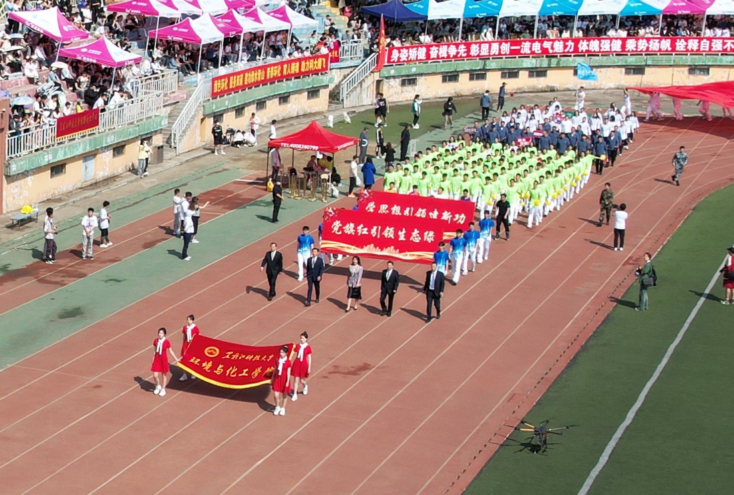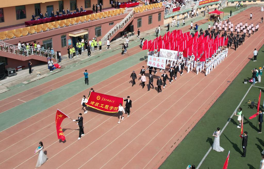 鼓乐声响,彩旗飘扬。大学生仪仗队、军乐团及各单位代表队依次进入运动场,接受大会检阅。各代表队精神饱满,步调铿锵,口号嘹亮,队列展示各具特色,充分展现了乐鱼网站_乐鱼(中国)师生的活力与风采。