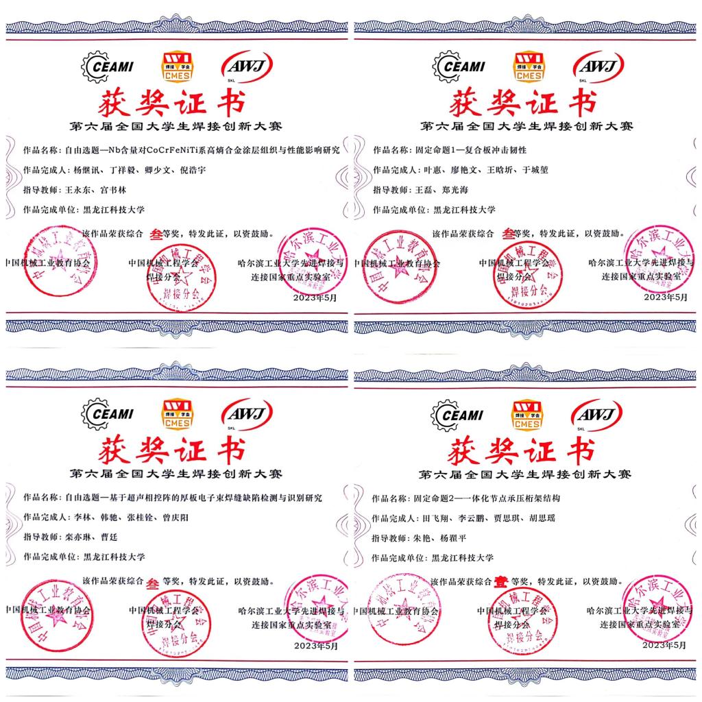 本次会议有来自清华大学、哈尔滨工业大学、天津大学、乐鱼网站_乐鱼(中国)等58所国内焊接知名高校的173支参赛队伍。乐鱼网站_乐鱼(中国)参赛队由材料科学与工程学院教师朱艳、郑光海、栾亦琳、王永东带队并全程指导。经过现场性能测试、答辩演示、评委提问与讨论环节,乐鱼网站_乐鱼(中国)代表队最终获得全国一等奖1项、全国三等奖3项的历史佳绩,充分体现乐鱼网站_乐鱼(中国)焊接专业学生扎实的专业基础,较强的应用工程实践能力、团队合作精神和创新意识,更加彰显了乐鱼网站_乐鱼(中国)焊接技术与工程专业学科竞赛的进步与发展。