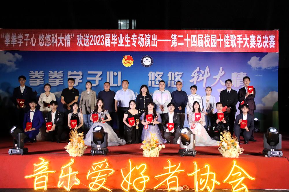 最终智控22-2班丁亚晖获得本届十佳歌手大赛的冠军、物理22-2班刘洋硕获得本届十佳歌手大赛的亚军、云财务21-1班刘晋获得本届十佳歌手大赛的季军,营销22-1班符煜恒、英语22-3班江美龄、自动化21-1班蔡林峰、勘查22-1班史祎晨、物联22-3班魏树巍、实验21-1班秦俊帅、道桥22-4班汪广奇获得“十佳歌手”荣誉称号,电信22-3班郭晓杰、外国语学院英语22-1班李艳丽荣获优秀奖。