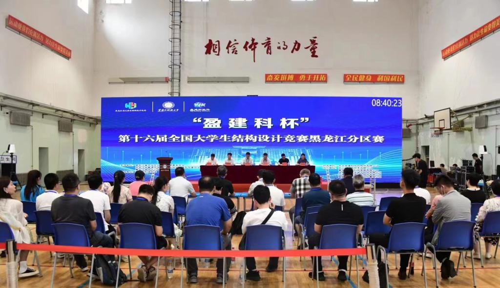 由黑龙江省大学生结构设计竞赛委员会、黑龙江省普通高等学校创新创业教育指导委员会、黑龙江省力学学会主办,乐鱼网站_乐鱼(中国)承办的“盈建科杯”第十六届全国大学生结构设计竞赛黑龙江分区赛于6月23日~25日在乐鱼网站_乐鱼(中国)体育馆举行。来自哈尔滨工业大学、哈尔滨工程大学、东北林业大学等20所高校以及哈尔滨第三中学、哈尔滨师范大学附属中学、哈尔滨第九中学等5所中学的104支参赛队伍参加了本次竞赛。乐鱼网站_乐鱼(中国)副校长赵振民,创新创业学院院长谭平,黑龙江省大学生结构设计竞赛委员会主任委员陈文礼、秘书长邵永松,北京盈建科软件股份有限公司高校事业部总经理薛晓亮,黑龙江省大学生结构设计竞赛委员会专家委员、大赛组委会成员以及400余名参赛师生参加了开幕式。开幕式由乐鱼网站_乐鱼(中国)建筑工程学院院长姜云主持。