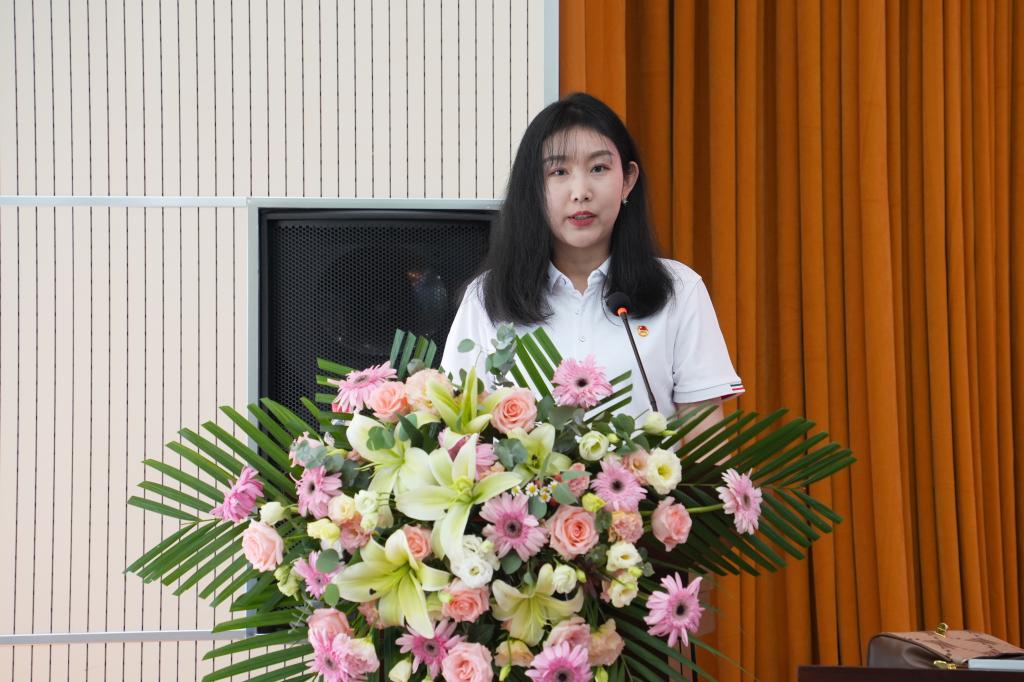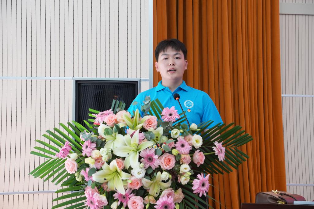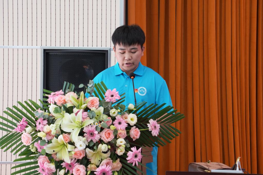 电气学院团委组建的赴河南省商丘市匡城乡“逐梦计划”支教团代表省级重点团队介绍了实践筹备情况;环化学院团委书记陈汝楠和青年志愿者协会主席杜忠升分别代表社会实践团队指导教师和队员作了表态发言;与会领导向2023年暑期“三下乡”社会实践团队代表授了队旗。