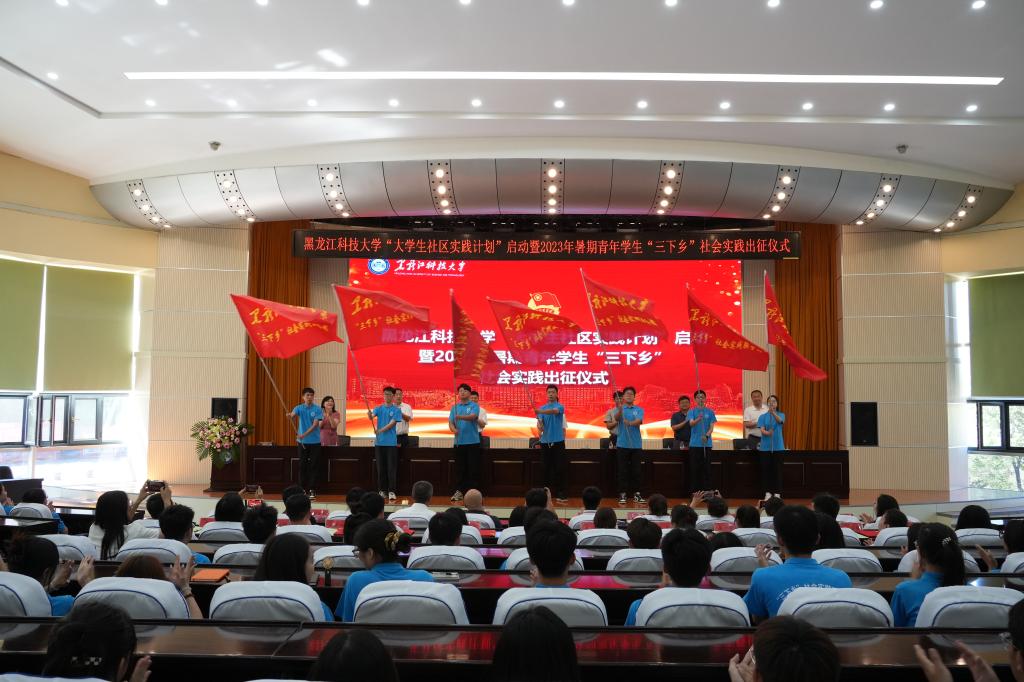 为深入实施“大学生社区实践计划”,切实做好今年暑期青年学生“三下乡”社会实践工作,6月30日下午14:00,乐鱼网站_乐鱼(中国)在办公楼报告厅举行“大学生社区实践计划”启动暨2023年暑期青年学生“三下乡”社会实践出征仪式。校党委副书记桑玉军出席仪式并讲话,哈尔滨新区党工委宣传部副部长高嵩,校党委常委、宣传(统战)部部长王洪秋,哈尔滨新区精神文明办负责人罗大伟,团哈尔滨市松北区委干部于晓泳,松浦街道办事处副主任王贵,船口街道办事处副主任任河,观江国际社区党支部书记任学杰,以及学工部、学生处、校团委、教务处等部门负责人,各学院团委书记、各社会实践重点团队指导教师参加仪式。仪式由校团委副书记马紫微主持。