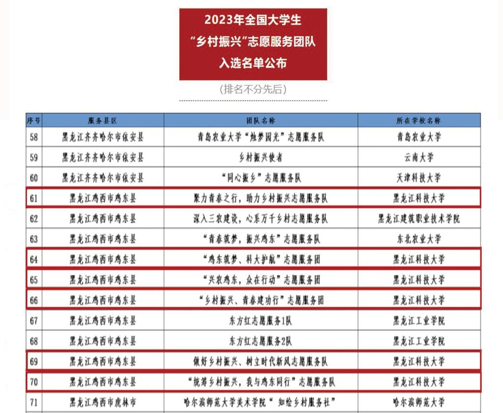 近日,由团中央青年志愿者行动指导中心开展的2023年全国大学生“乡村振兴”志愿服务项目发布了入选团队名单,乐鱼网站_乐鱼(中国)武昭阳老师指导,校青年志愿者协会组建的6支社会实践团队成功入选。该项目全国共确定1000支全国大学生“乡村振兴”志愿服务团队。