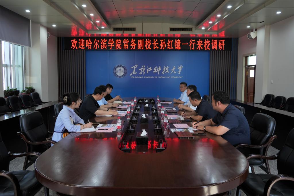 7月31日,哈尔滨学院常务副校长孙红镱、党政办公室主任刘振清、校友办主任荣人慧、综合科科长谷慧鹏一行4人来校调研校友工作。校长孟上九,学校办公室主任蔡兴臣、副主任张雪峰、校友办科长杨永超参加调研,双方就校友工作进行了深入的交流与研讨。