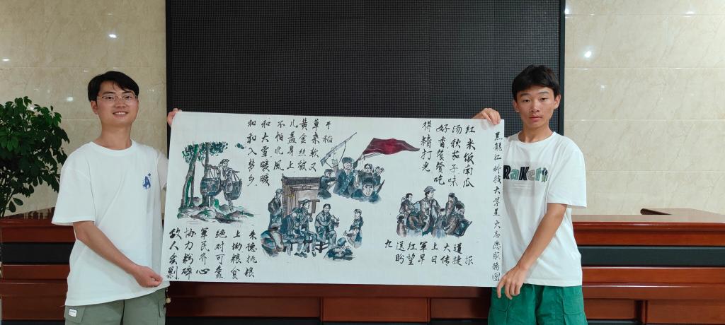 绘画卷,抒发青春豪情。实践团成员在学习调研后,围绕“朱德挑梁”“红米饭南瓜汤”等主题,通过书法、绘画等形式创作了一批文化作品,抒发了对井冈山历史的深切缅怀,表达了对美好未来的无限期许,彰显了乐鱼网站_乐鱼(中国)青年的坚定信念,展现了乐鱼网站_乐鱼(中国)学子的青春豪情。